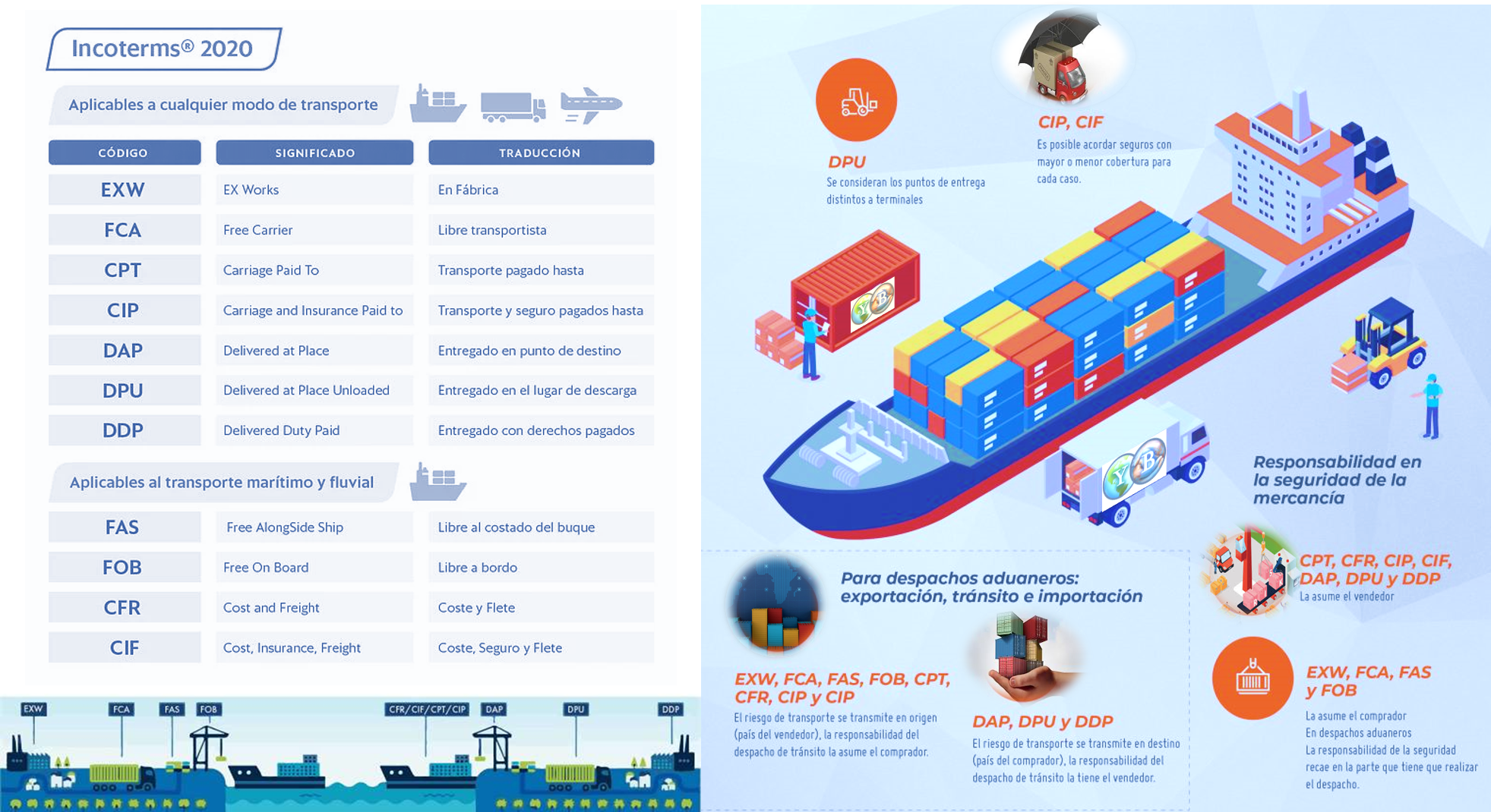 Info útil Facilitadores del Comercio Exterior Aquí encontrarás información de utilidad como son los INCOTERMS, medidas de los contenedores y algunos links de interés. Incoterms Contenedores Links de interés